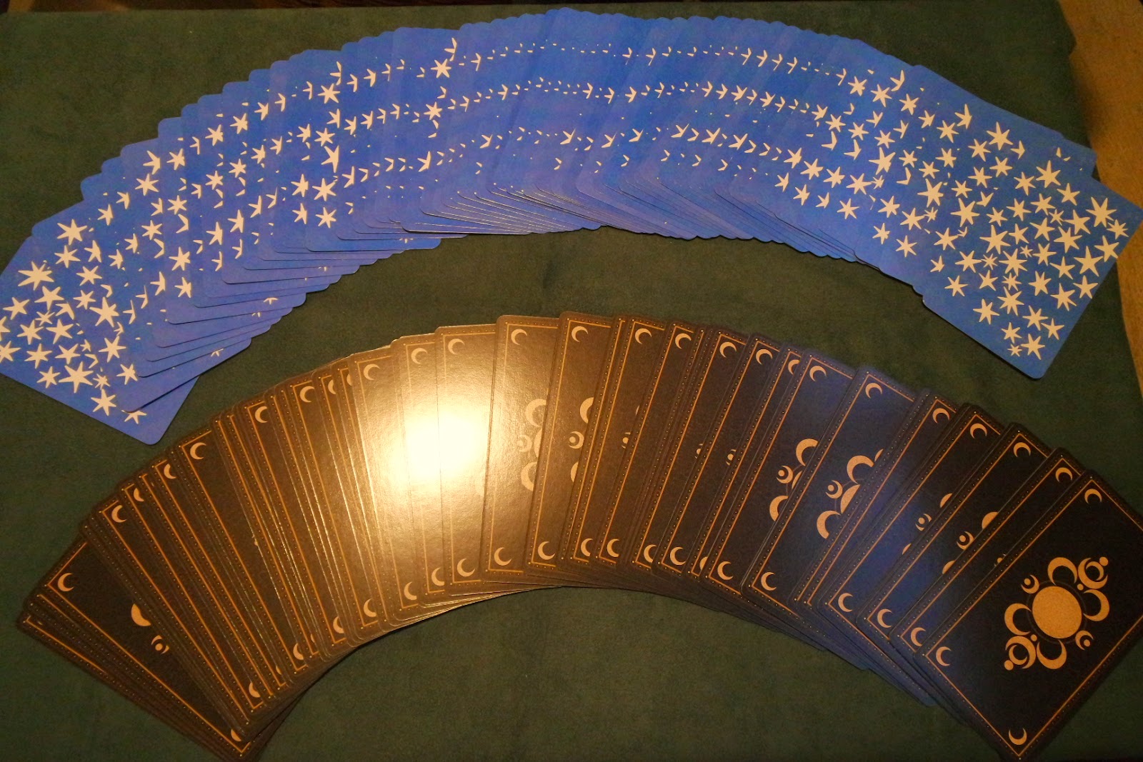 左邊的Morgan-Greer 是正常塔羅牌大小,Deviant Moon 奇異月亮無邊框版本比較高。
