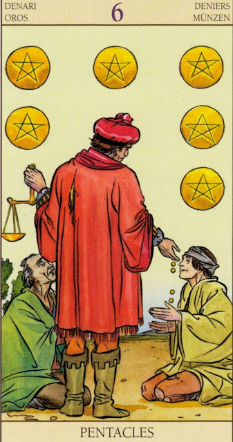 而且這張牌有另外一層意義,可能,你這兩週還要給別人錢呢...... 給家人?醫生?朋友?情人?我不知道.... 但從好的方面看,你已經擁有「比較多」,所以可以給別人錢了,也是一件好事囉!(希望這個安慰你有收到..........